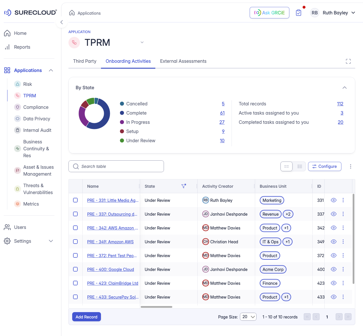 Each application contains one or more workflow tabs. These represent different record types or stages within the application.