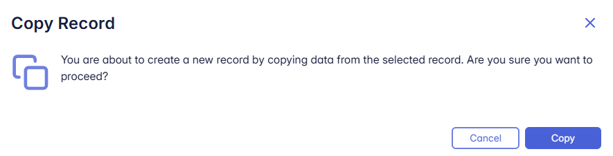 When prompted, confirm you want to create a new record by copying data from the selected record: