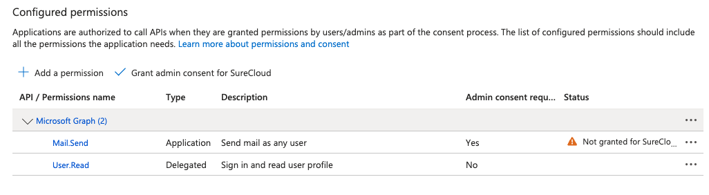 - Add the permission "Mail.Send".