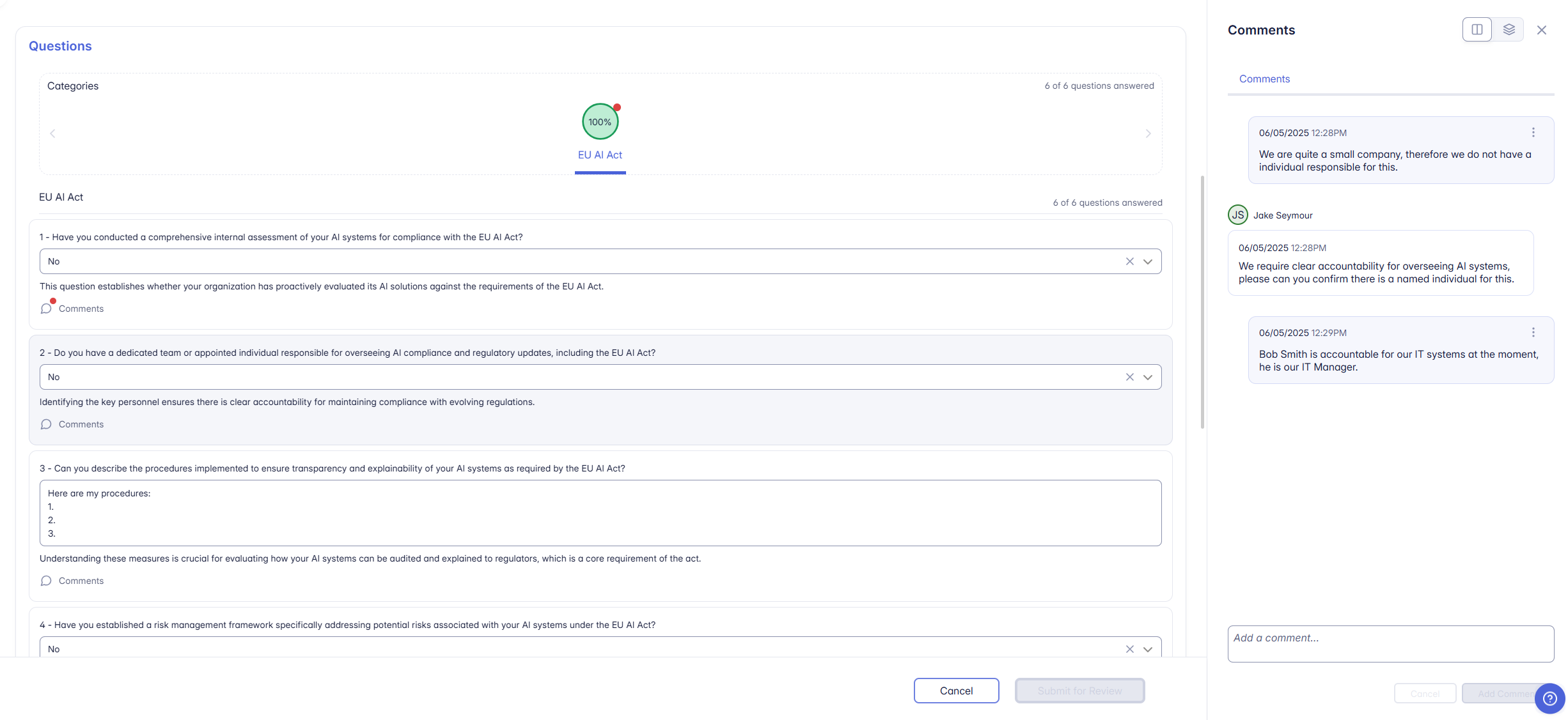 - Every comment is recorded and time-stamped, helping teams understand how decisions were made and who was involved.