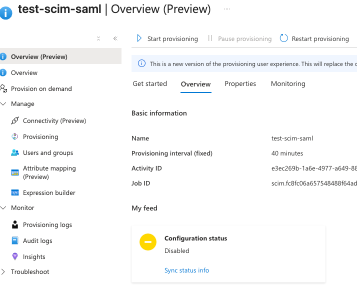 - From the left-hand menu select Manage -> Provisioning.