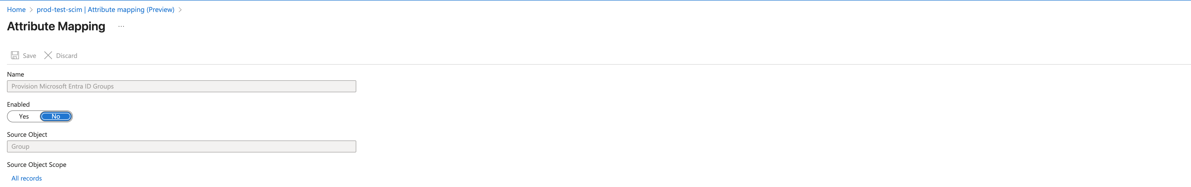- Return to the previous screen. Attribute mapping (Preview).