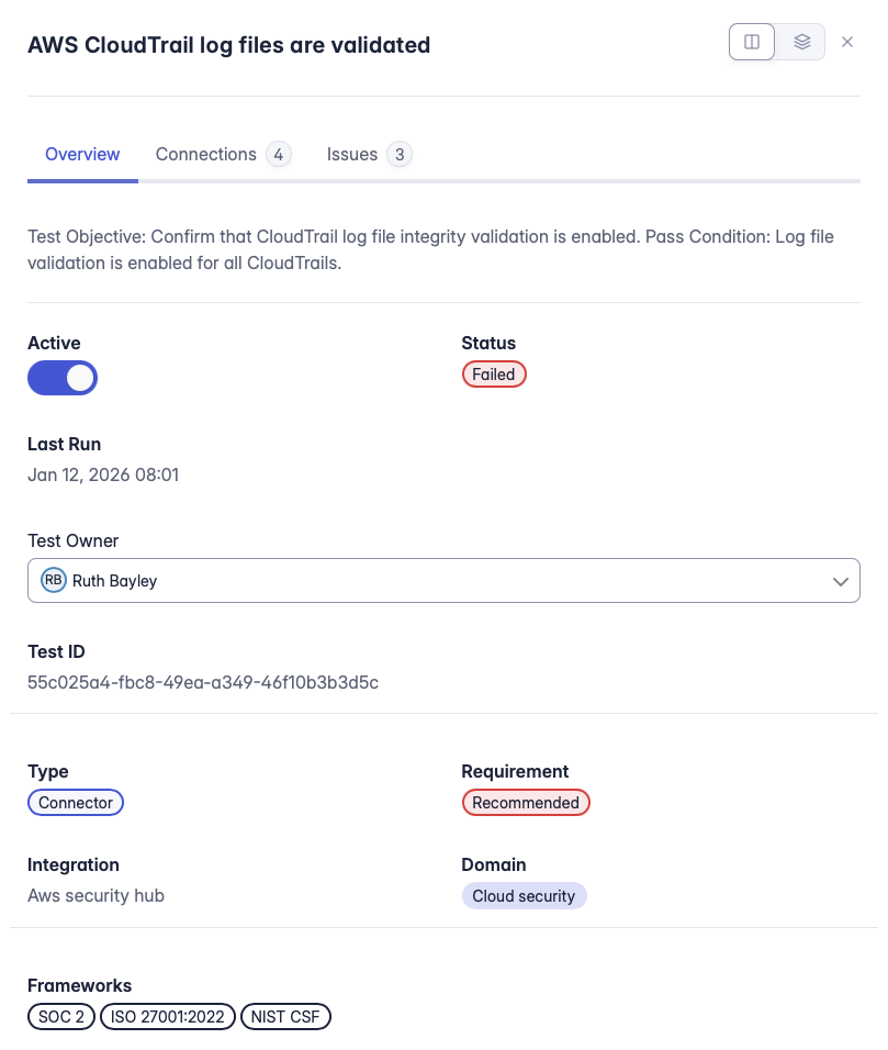 This ensures each test supports broader compliance objectives, and keeps everything aligned in one place.